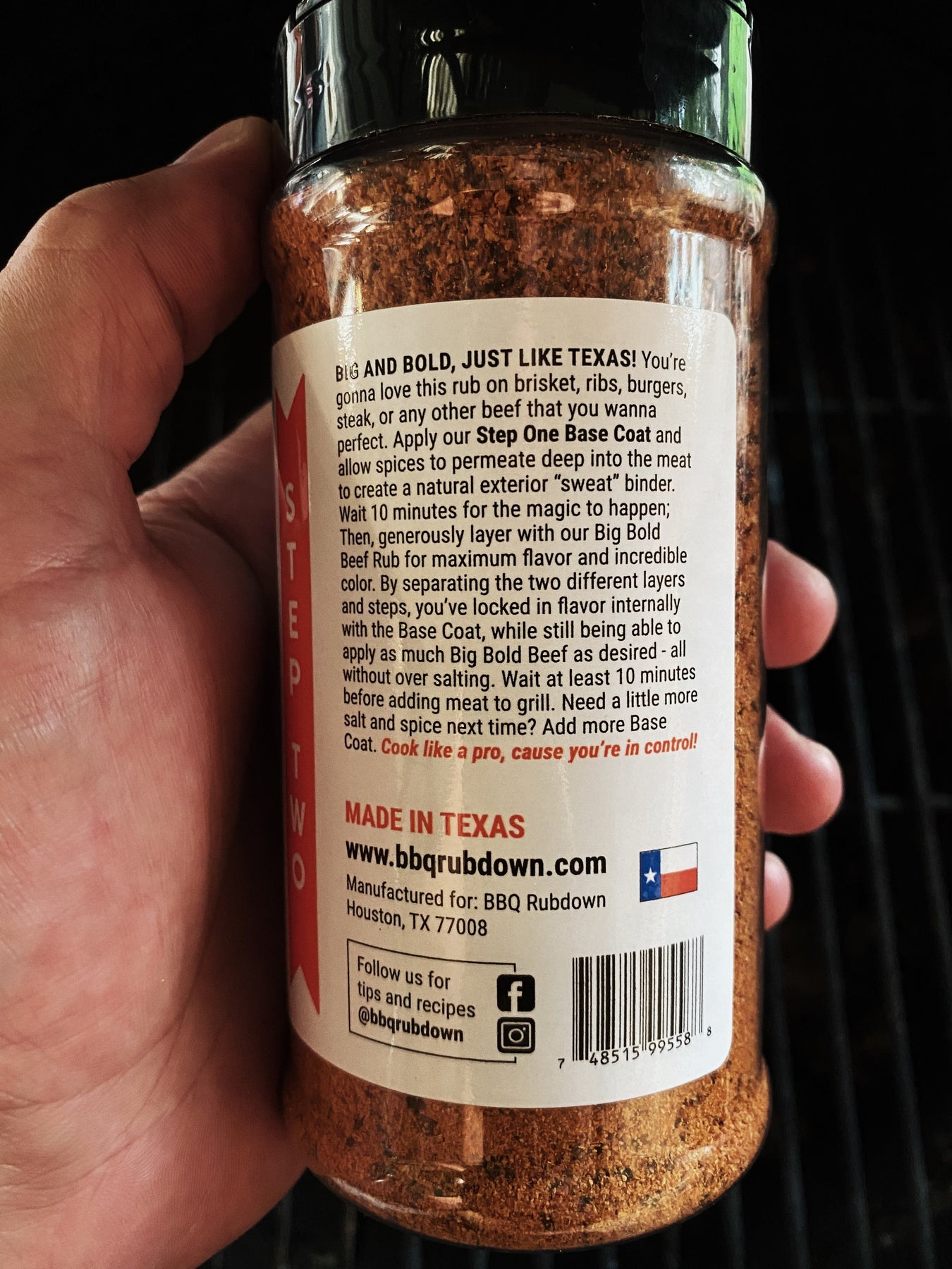 You’re gonna love this rub on brisket, ribs, burgers, steak, or any other beef that you wanna perfect. Apply one of our Step One Base Coats and allow spices to permeate deep into the meat to create a natural exterior “sweat” binder. Wait at least 10 minutes for the magic to happen, then generously layer with our Big Bold Beef Rub for maximum flavor and incredible color. Wait at least 10 more minutes before cooking. By separating the two different layers and steps, you’ve locked in flavor internally with a Base Coat, while still being able to apply as much Big Bold Beef as desired - all without over salting. Need a little more salt and spice next time? Add more Base Coat. Cook like a pro, cause you’re in control! (Don’t like salt, don’t add a Base Coat!)