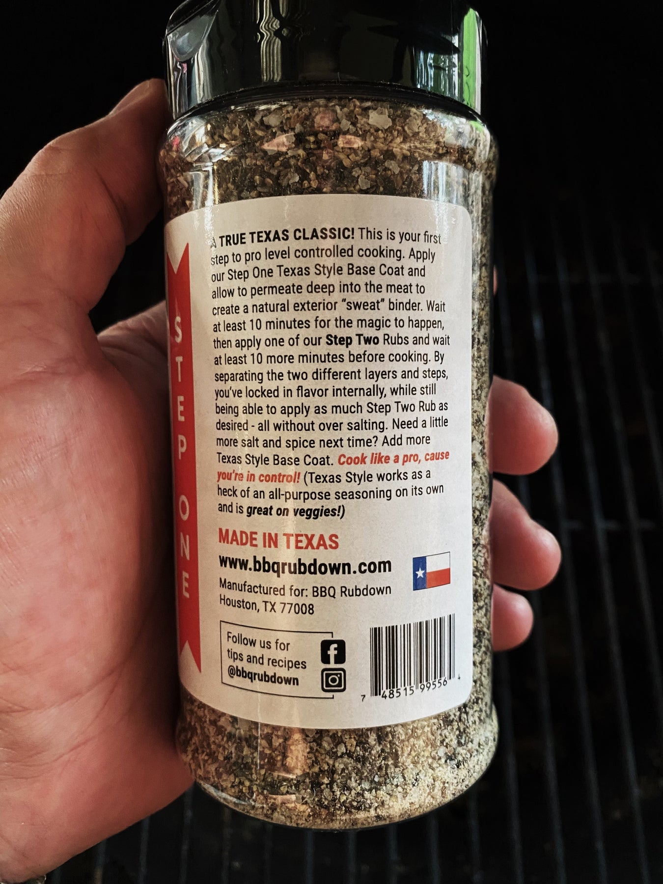 This is your first step to pro level controlled cooking. Apply our Good Ol’ Texas Style and allow to permeate deep into the meat to create a natural exterior “sweat” binder. Wait at least 10 minutes for the magic to happen, then apply one of our Step Two Rubs and wait at least 10 more minutes before cooking. By separating the two different layers and steps, you’ve locked in flavor internally, while still being able to apply as much Step Two Rub as desired - all without over salting. Need a little more salt and spice next time?…add more Texas Style. Cook like a pro, cause you’re in control! (Texas Style works as a heck of an all-purpose seasoning on its own and is great on veggies!)