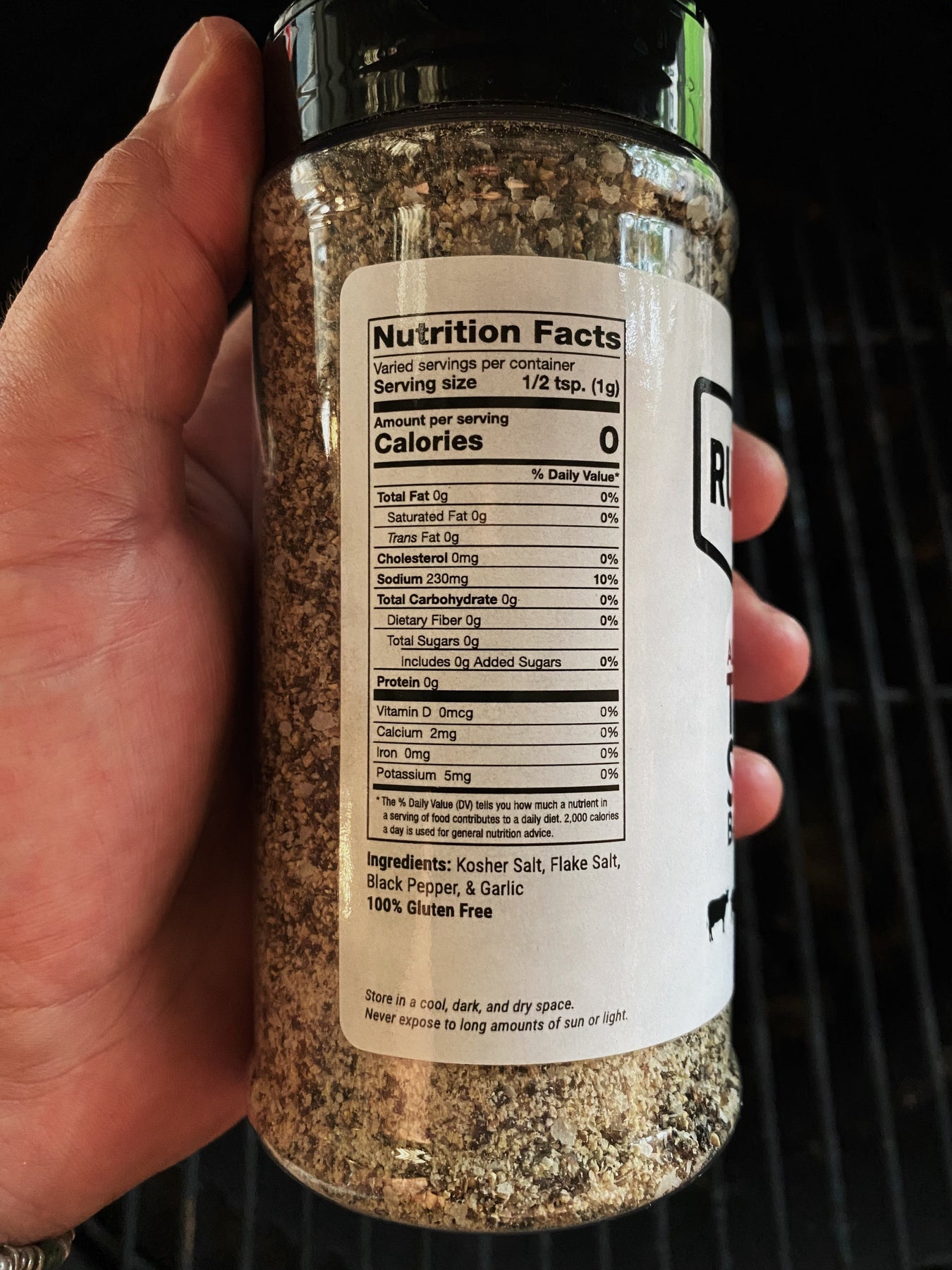 Made with two different mesh weights of course ground black pepper, flake sea salt, kosher salt, and garlic. - Formerly known as Good Ol' Texas Style. Same blend, just a little modification to the name.