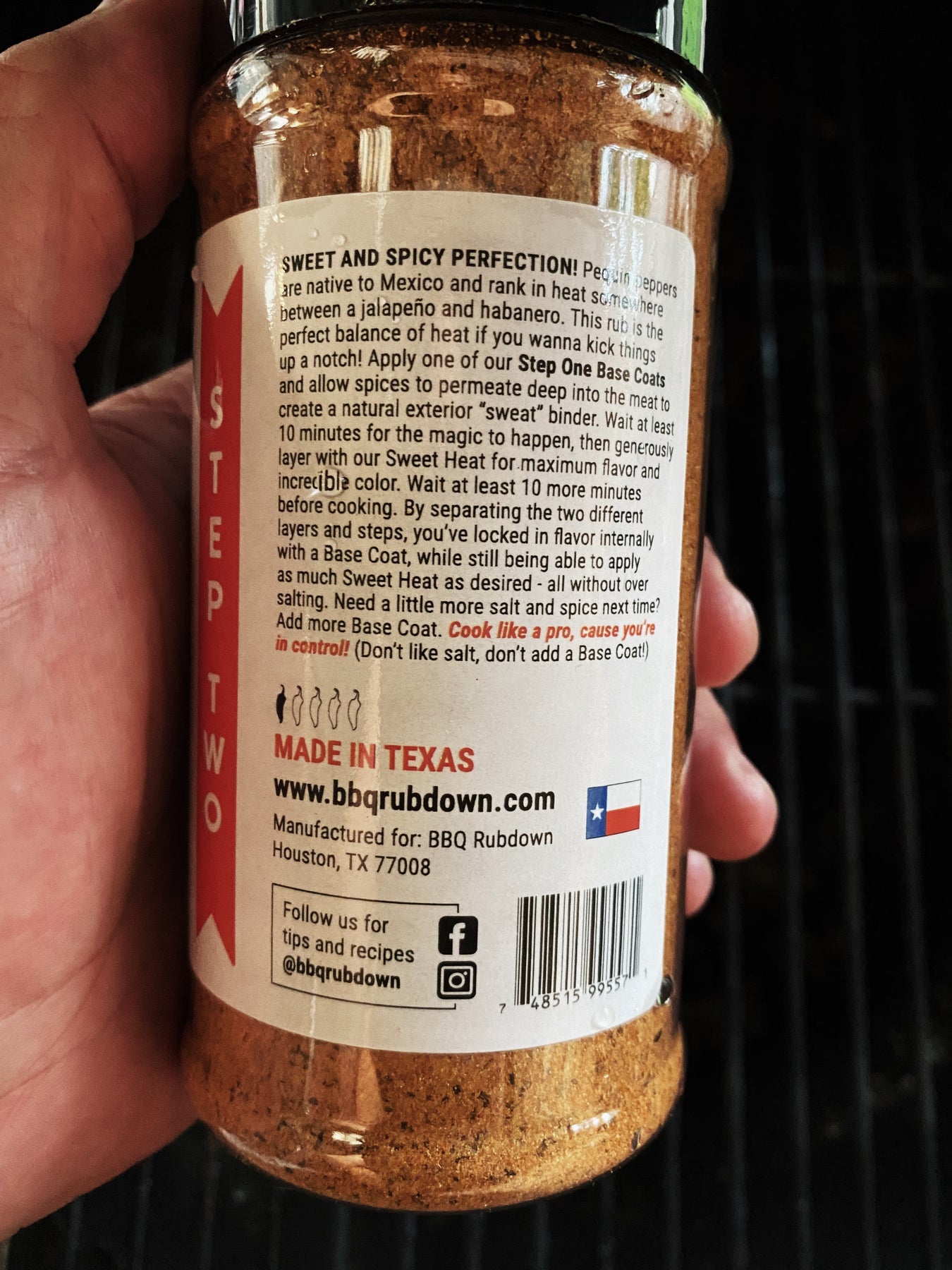 Pequin peppers are native to Mexico and rank in heat somewhere between a jalapeño and habanero. This rub is the perfect balance of heat if you wanna kick things up a notch! Apply one of our Step One Base Coats and allow spices to permeate deep into the meat to create a natural exterior “sweat” binder. Wait at least 10 minutes for the magic to happen, then generously layer with our Sweet Heat for maximum flavor and incredible color. Wait at least 10 more minutes before cooking. By separating the two different layers and steps, you’ve locked in flavor internally with a Base Coat, while still being able to apply as much Sweet Heat as desired - all without over salting. Need a little more salt and spice next time? Add more Base Coat. Cook like a pro, cause you’re in control! (Don’t like salt, don’t add a Base Coat!)