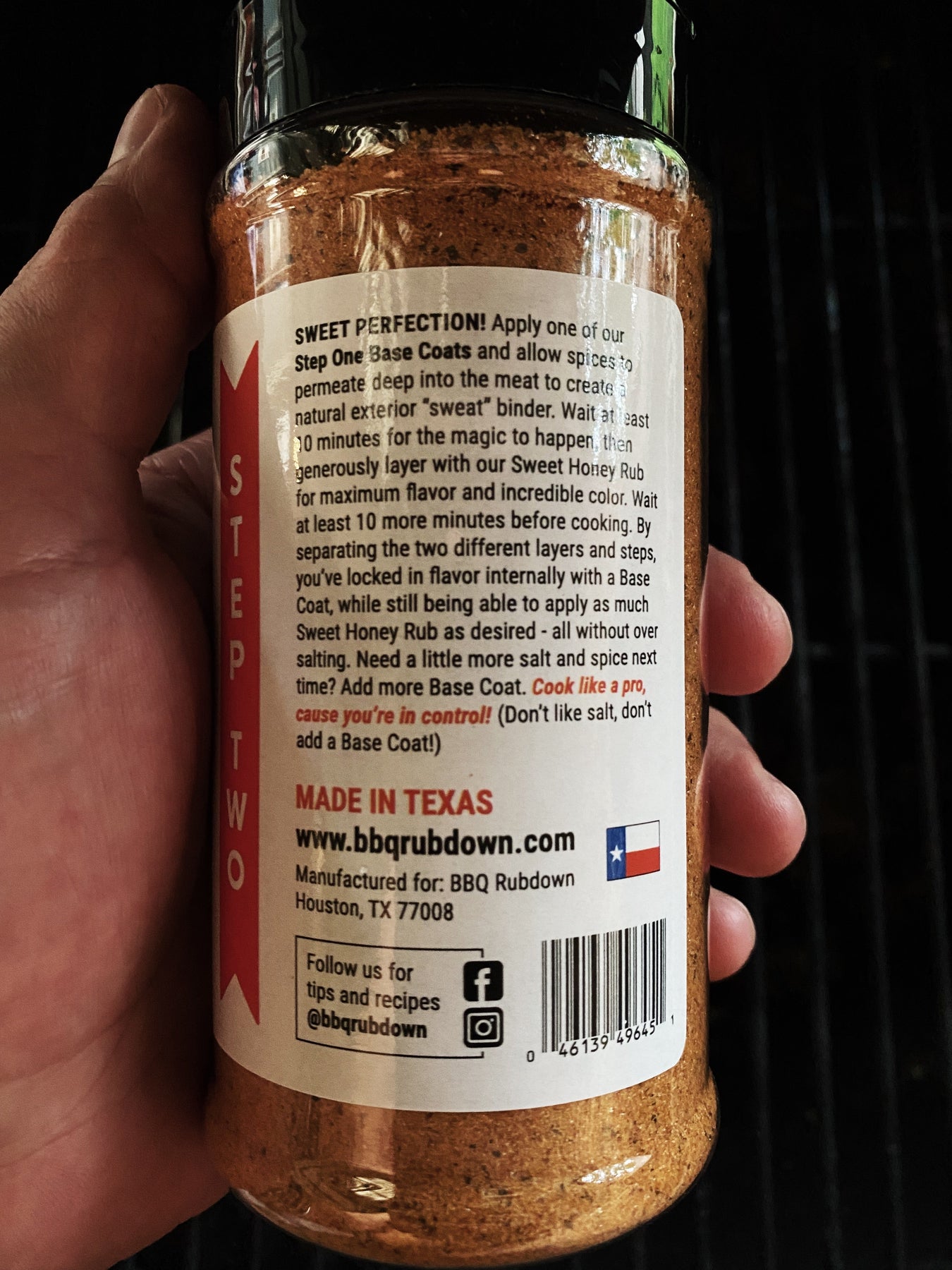 Apply one of our Step One Base Coats and allow spices to permeate deep into the meat to create a natural exterior “sweat” binder. Wait at least 10 minutes for the magic to happen, then generously layer with our Sweet Honey Rub for maximum flavor and incredible color. Wait at least 10 more minutes before cooking. By separating the two different layers and steps, you’ve locked in flavor internally with a Base Coat, while still being able to apply as much Sweet Honey Rub as desired - all without over salting. Need a little more salt and spice next time? Add more Base Coat. Cook like a pro, cause you’re in control! (Don’t like salt, don’t add a Base Coat!)