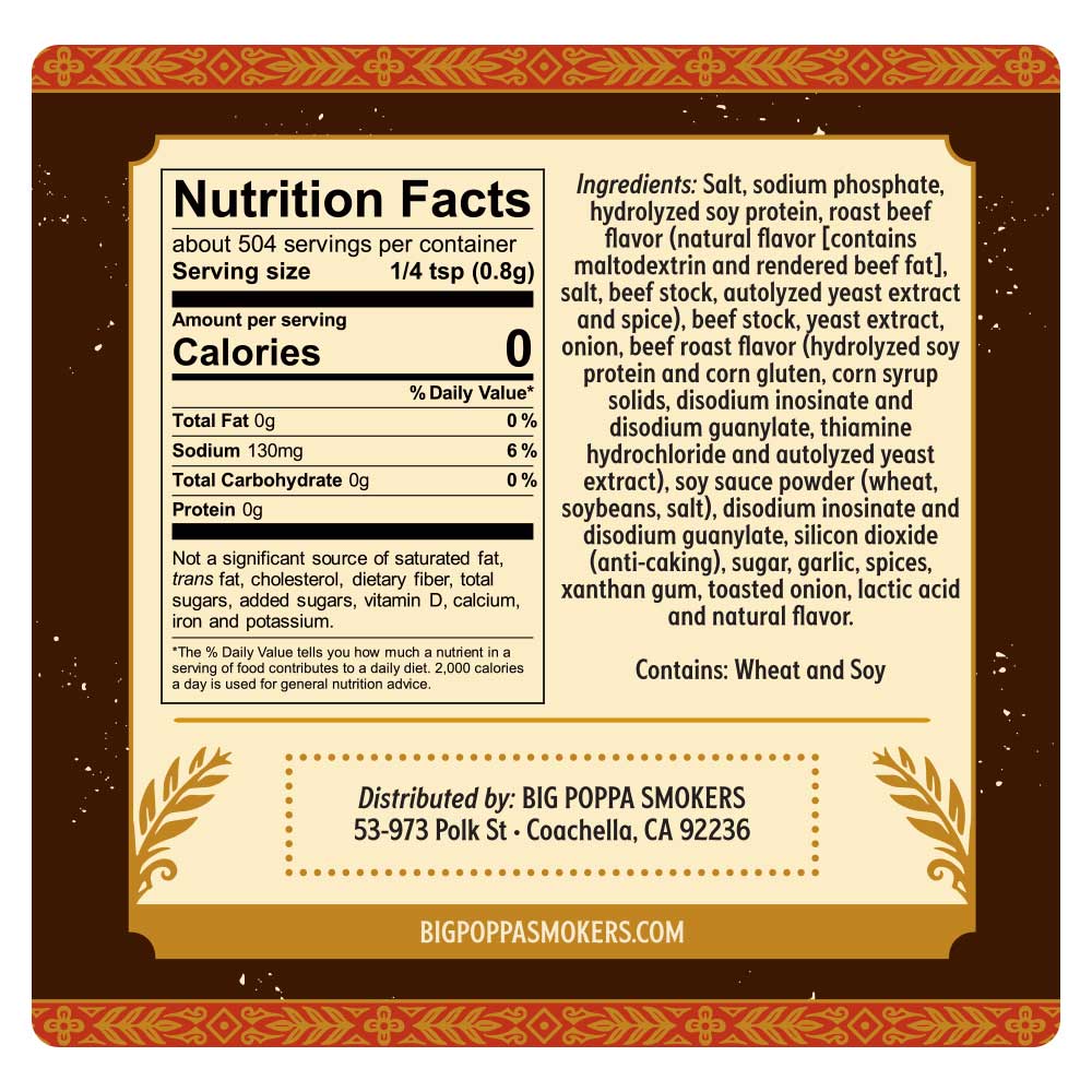 • Adds moisture and savory depth to brisket and beef cuts